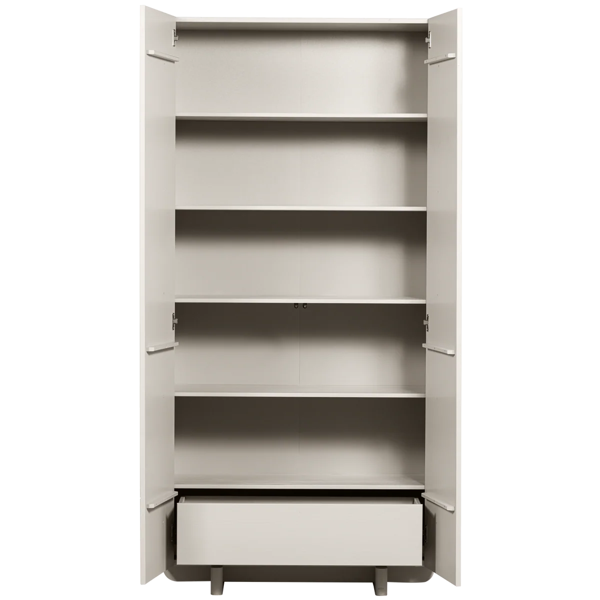 Le meuble de rangement Bazu de WOOOD associe élégance scandinave et praticité. Conçu en pin FSC avec finition naturelle mate, il dispose de 2 portes, 5 compartiments et 1 tiroir pour organiser vos affaires avec style. Son design intemporel s’intègre facilement dans tous les intérieurs.