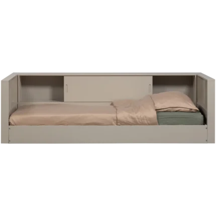 Lit-banquette 90x200 cm en pin massif FSC. Avec rangements intégrés, style moderne, finition écologique. Parfait pour chambre d’enfant ou ado.