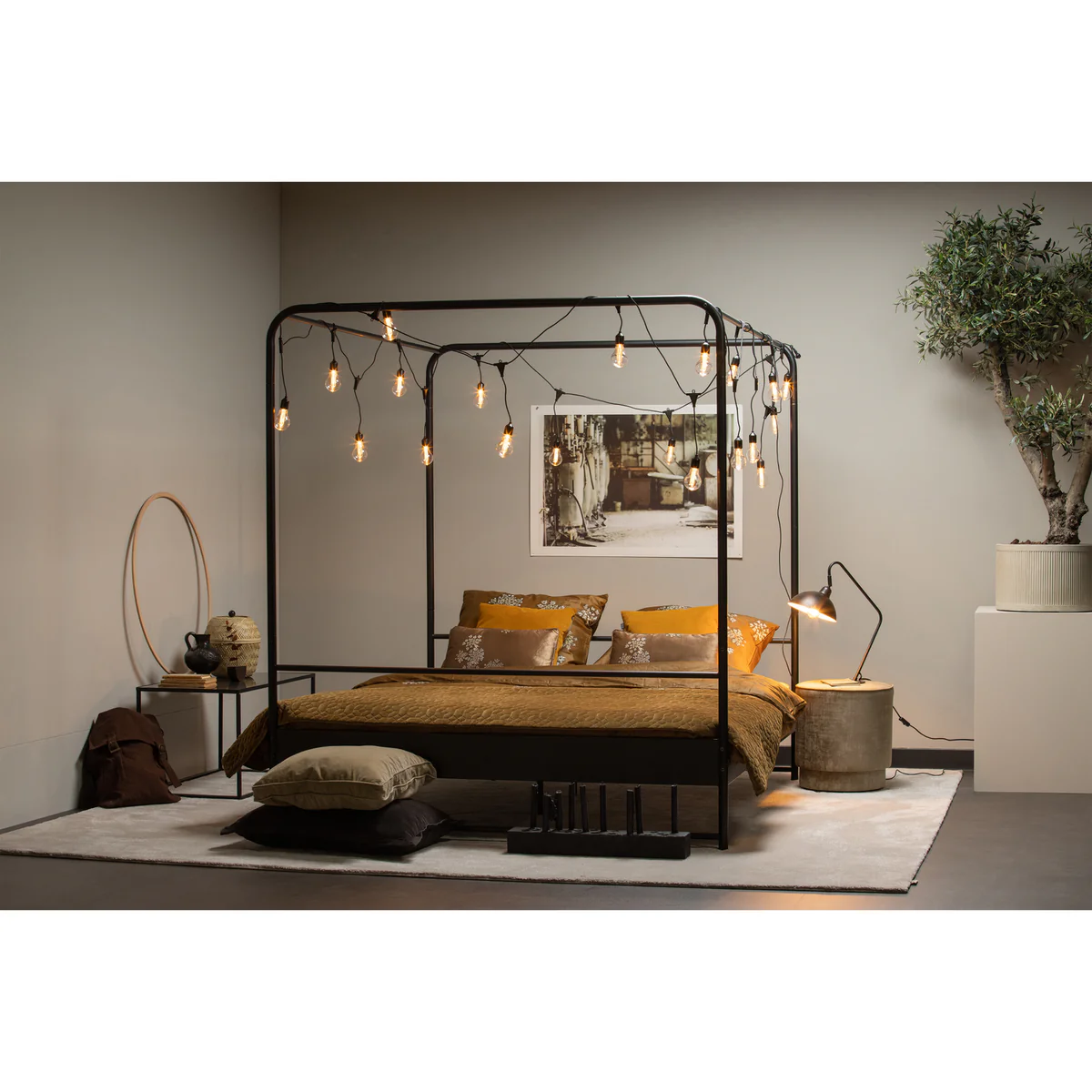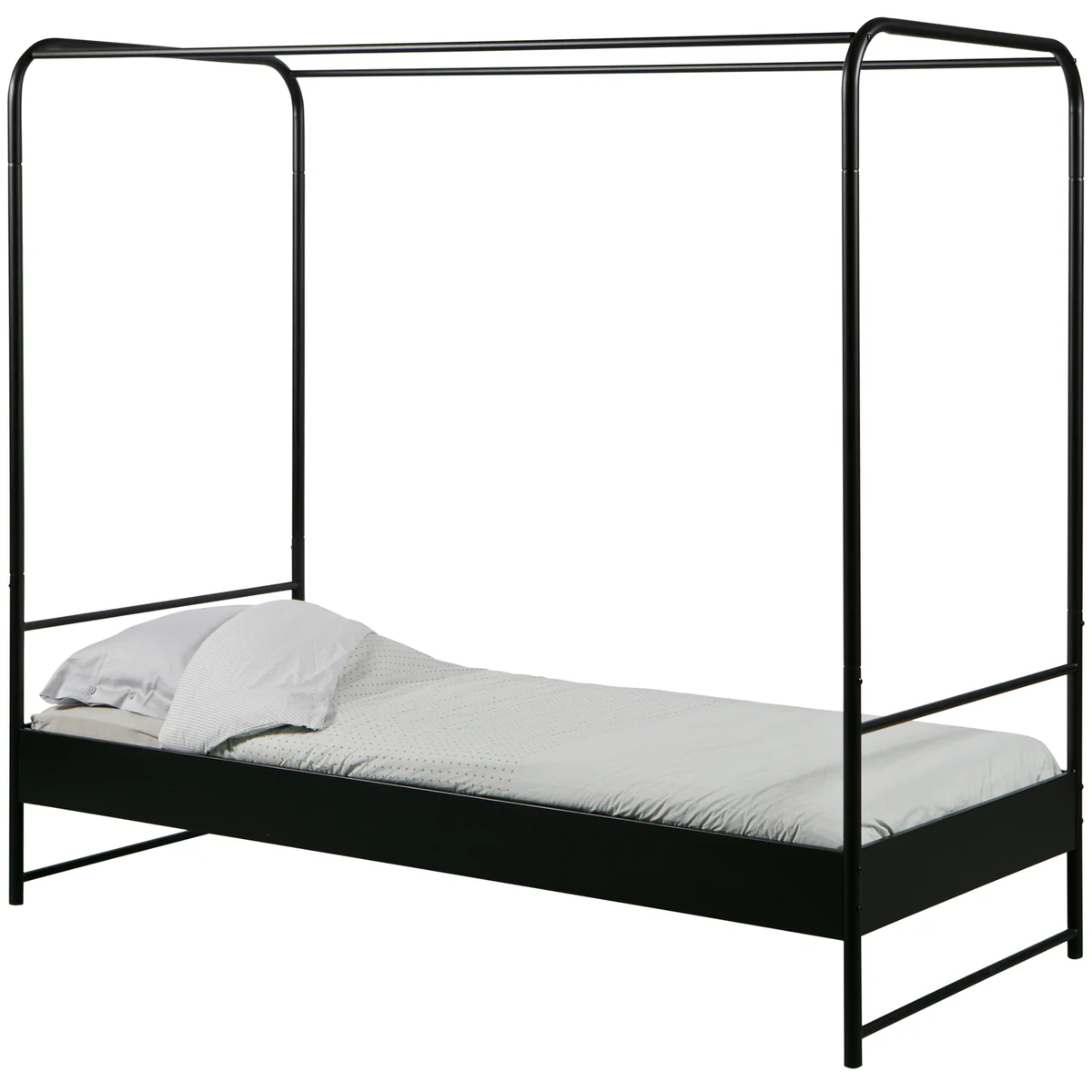 Le cadre tubulaire en acier thermolaqué noir offre une allure moderne et épurée. Vous pouvez personnaliser le lit en y accrochant des guirlandes lumineuses, du coton ou des torchons pour ajouter une touche personnelle. -