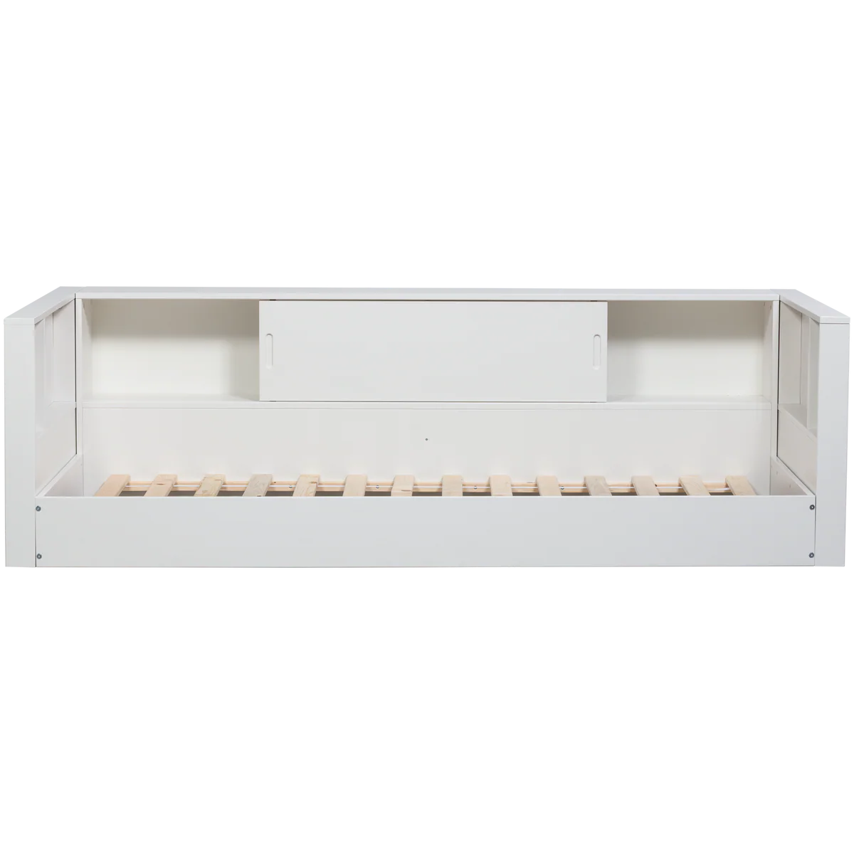 Les chambres d’enfants manquent souvent d’espace. Le lit-banquette Carter règle ce problème avec élégance. Son design compact (215 x 118 cm) cache une capacité de rangement généreuse et permet d’optimiser chaque mètre carré.