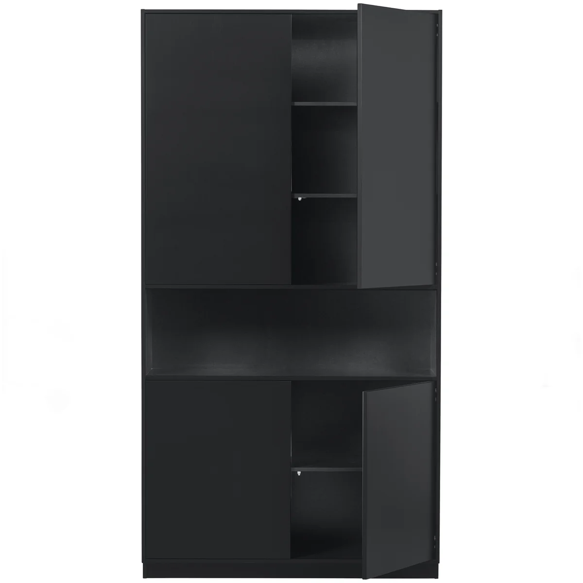 L’armoire de rangement Finca de WOOOD allie élégance et praticité. Avec son design épuré, ses deux portes spacieuses et son compartiment ouvert central, elle met en valeur vos objets tout en offrant un grand espace de rangement. Fabriquée en pin massif naturel avec finition noire, l’armoire de rangement Finca est robuste, authentique et pleine de caractère.