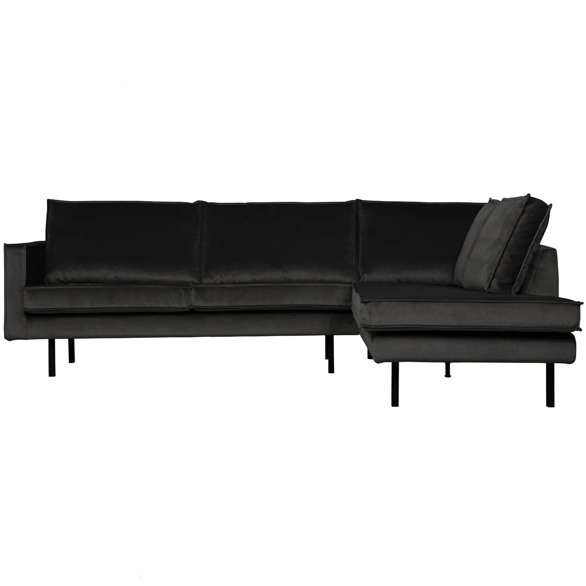 Le canapé d’angle Rodeo séduit par son design moderne et robuste. Revêtu de velours élégant, il offre un confort spacieux et durable. Ses pieds en métal noir assurent stabilité et style. Idéal pour un salon contemporain, il combine esthétique et praticité avec des coussins amovibles faciles à entretenir.