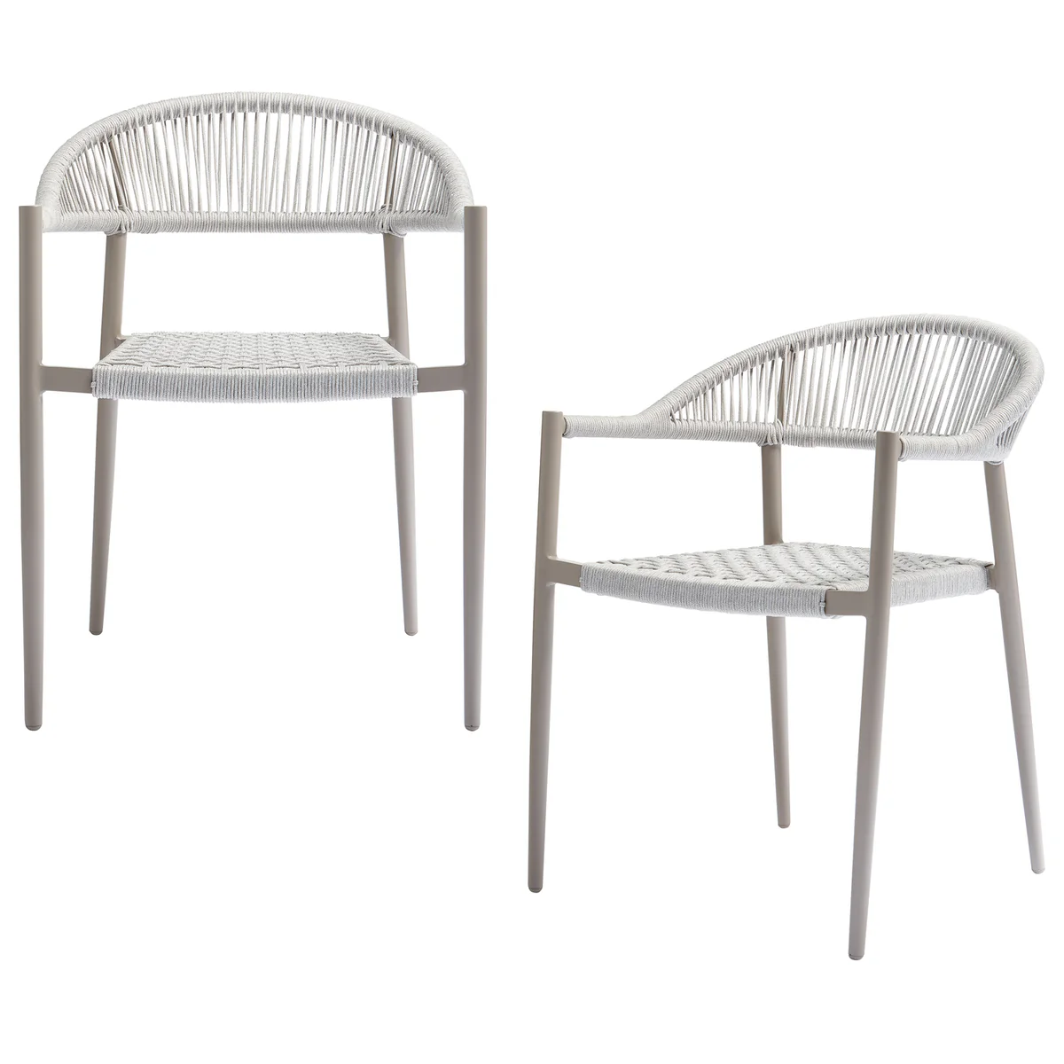 Set de 2 chaises de jardin jaunes en corde et aluminium gris clair – confortables, résistantes et parfaites pour terrasse, balcon ou extérieur.