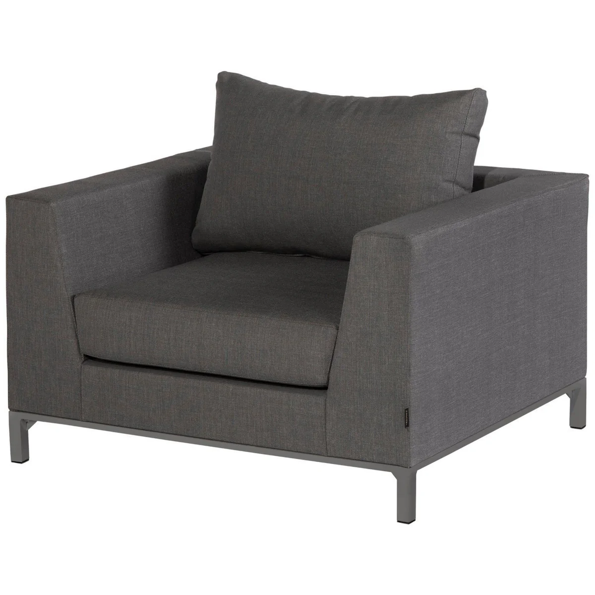Le fauteuil Sicily WOOOD gris pierre offre confort et résistance grâce à son tissu Nanotex imperméable et UV. Parfait pour un coin lounge extérieur élégant.