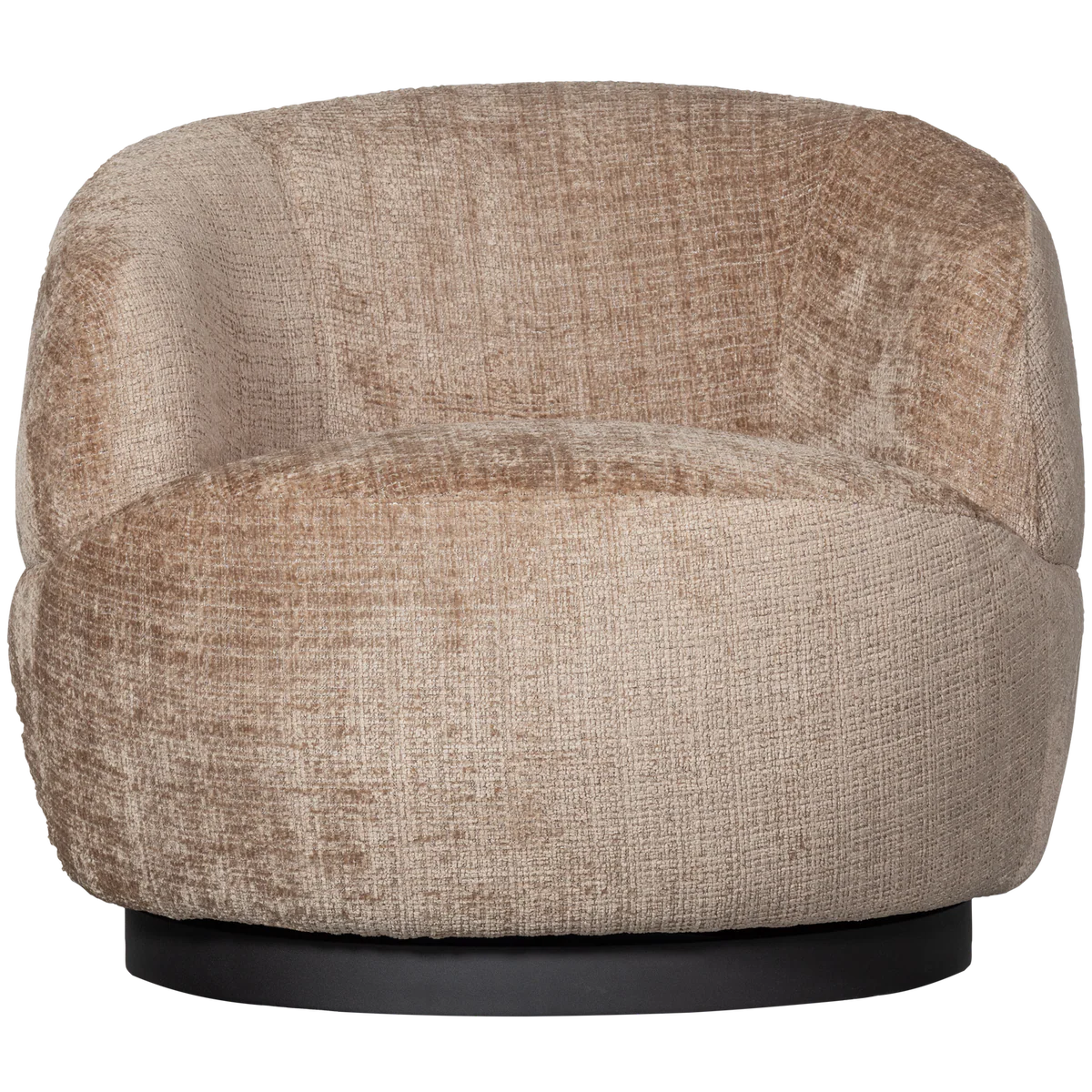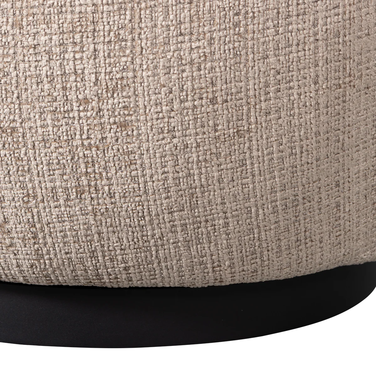 Le fauteuil pivotant Woolly en chenille sable combine confort et style. Son assise moelleuse, son tissu doux et résistant, ainsi que son piètement noir solide créent un fauteuil élégant et accueillant. Parfait pour se détendre, il apporte chaleur et modernité à tout salon ou espace cosy.